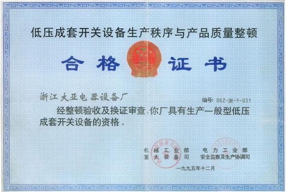 Certificate of Conformity for Rectification of Production Order of Low Voltage Switchgear Sets